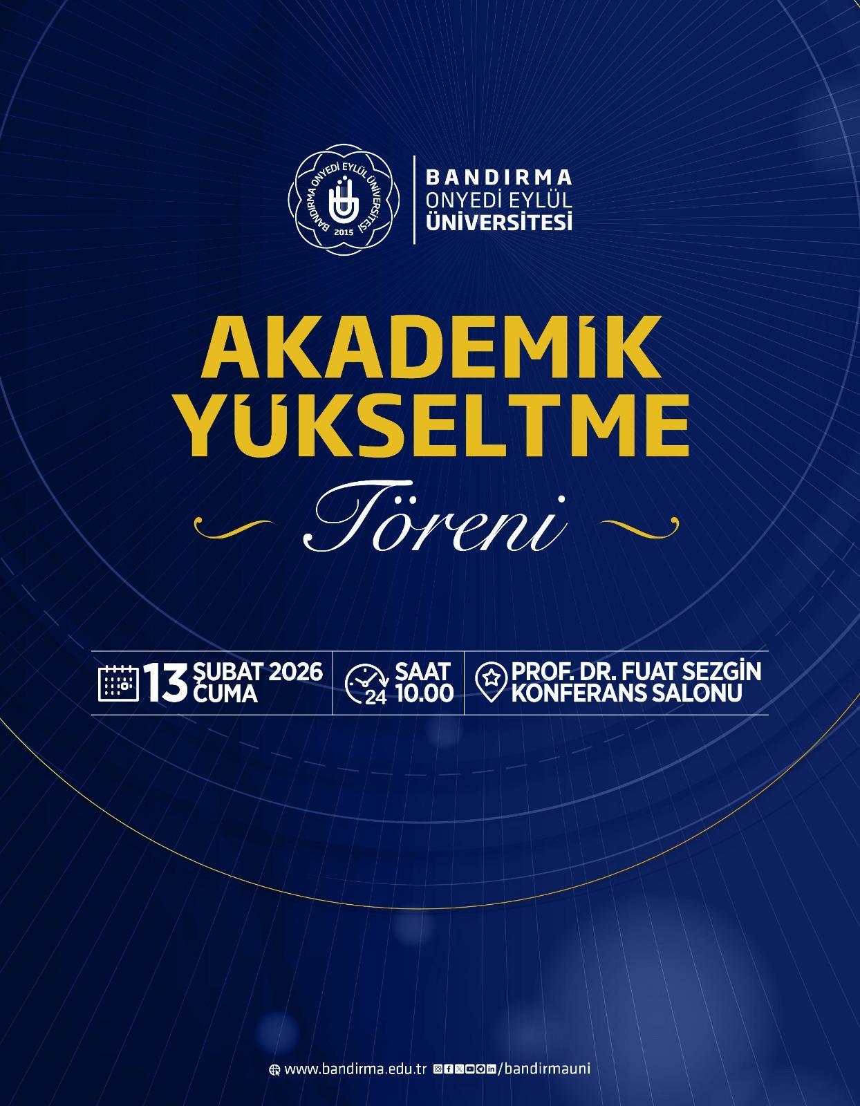 Bilimsel üretim, akademik emek ve kurumsal gelişim açısından büyük önem taşıyan bu anlamlı tören, 13 Şubat 2026 Cuma günü saat 10.00’da Prof. Dr. Fuat Sezgin Konferans Salonu’nda gerçekleştirilecektir. Törende, akademik yükseltme alan öğretim üyelerimize belgeleri takdim edilecek; üniversitemizin bilimsel başarılarına katkı sunan akademisyenlerimizle birlikte bu gurur verici süreç paylaşılacaktır.
