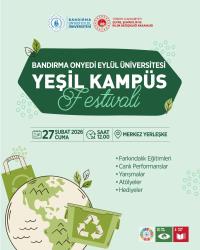 Üniversitemiz Sıfır Atık Yönetim Koordinatörlüğü öncülüğünde düzenlenecek Yeşil Kampüs Festivali, 27 Şubat 2026 Cuma günü saat 12.00’de merkez yerleşkemizde öğrencilerimizle buluşuyor.