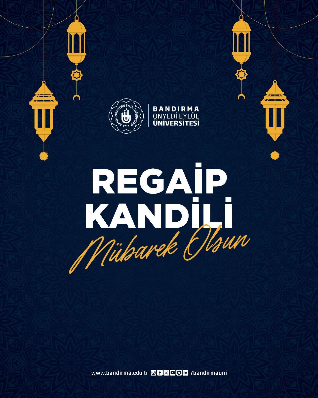 Bu vesileyle, başta Üniversitemiz mensupları ve öğrencilerimiz olmak üzere aziz milletimizin ve tüm İslam âleminin Regaip Kandili’ni en içten dileklerimle tebrik ediyorum.