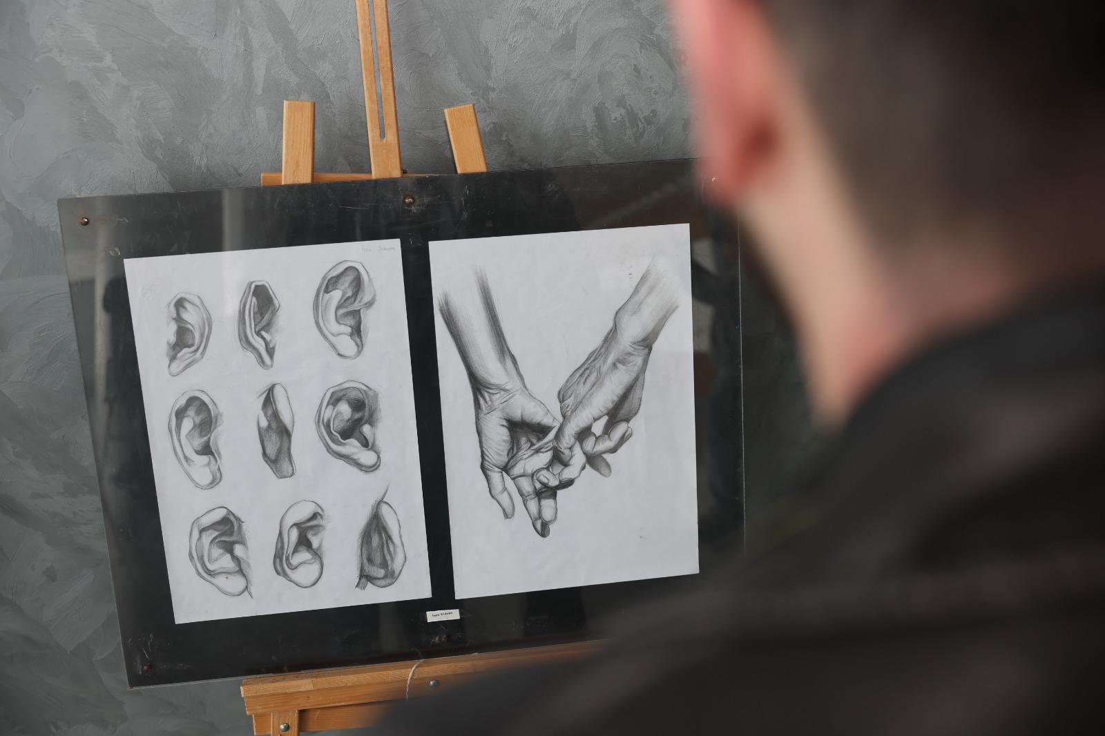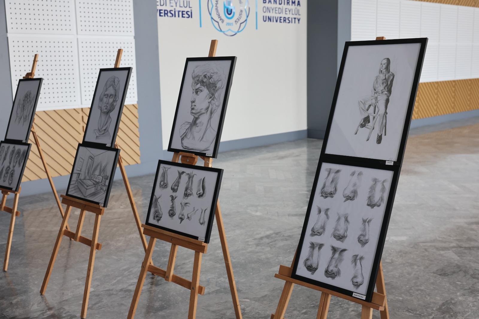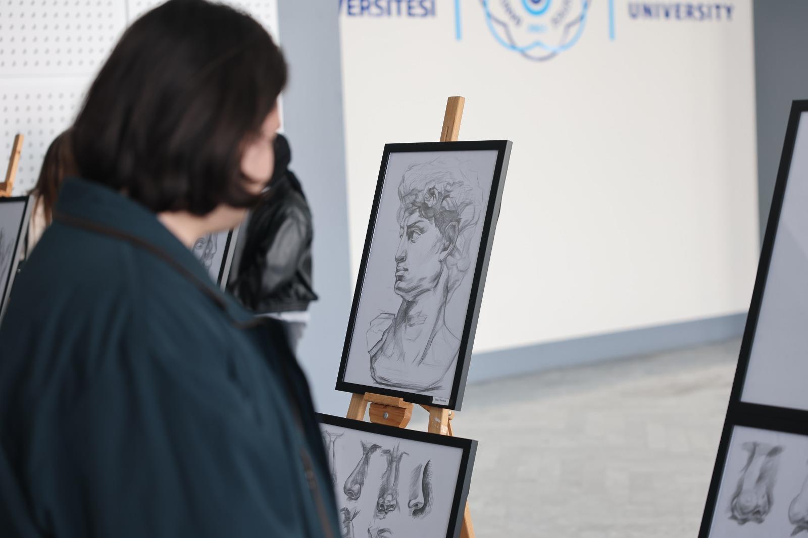 Karakalem tekniğiyle hazırlanan ve çizgi, form ile kompozisyon üzerine özgün yorumları bir araya getiren sergi; öğrencilerimizin akademik yıl boyunca edindikleri bilgi ve deneyimlerin yansımasını sanatseverlerle buluşturuyor.