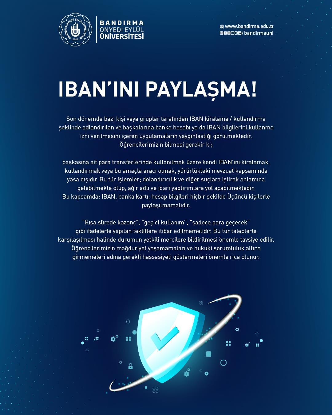 Son dönemde bazı kişi veya gruplar tarafından IBAN kiralama / kullandırma şeklinde adlandırılan ve başkalarına banka hesabı ya da IBAN bilgilerini kullanma izni verilmesini içeren uygulamaların yaygınlaştığı görülmektedir. Öğrencilerimizin bilmesi gerekir ki;