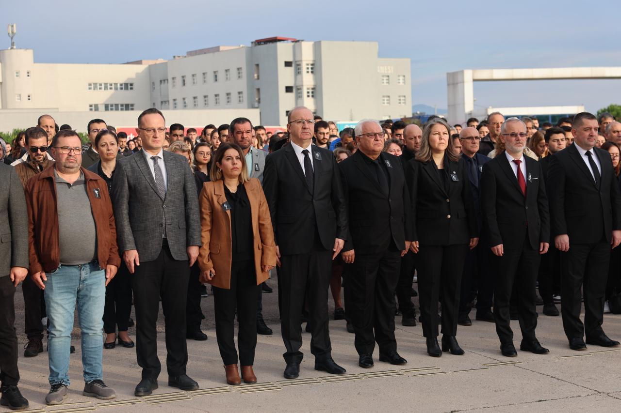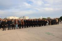 Tören, saat 09.05’te çalan sirenler eşliğinde iki dakikalık saygı duruşunda bulunulması ve ardından İstiklâl Marşı’nın okunmasıyla başladı. Katılımcılar, Gazi Mustafa Kemal Atatürk başta olmak üzere, tüm silah arkadaşlarını ve vatan uğruna canlarını feda eden aziz şehitlerimizi saygı, rahmet ve minnetle andı.