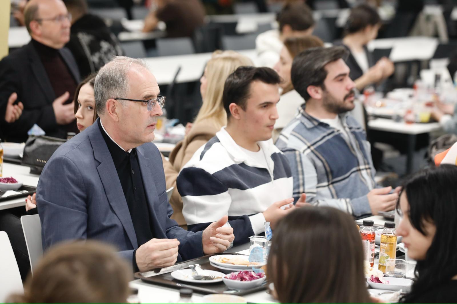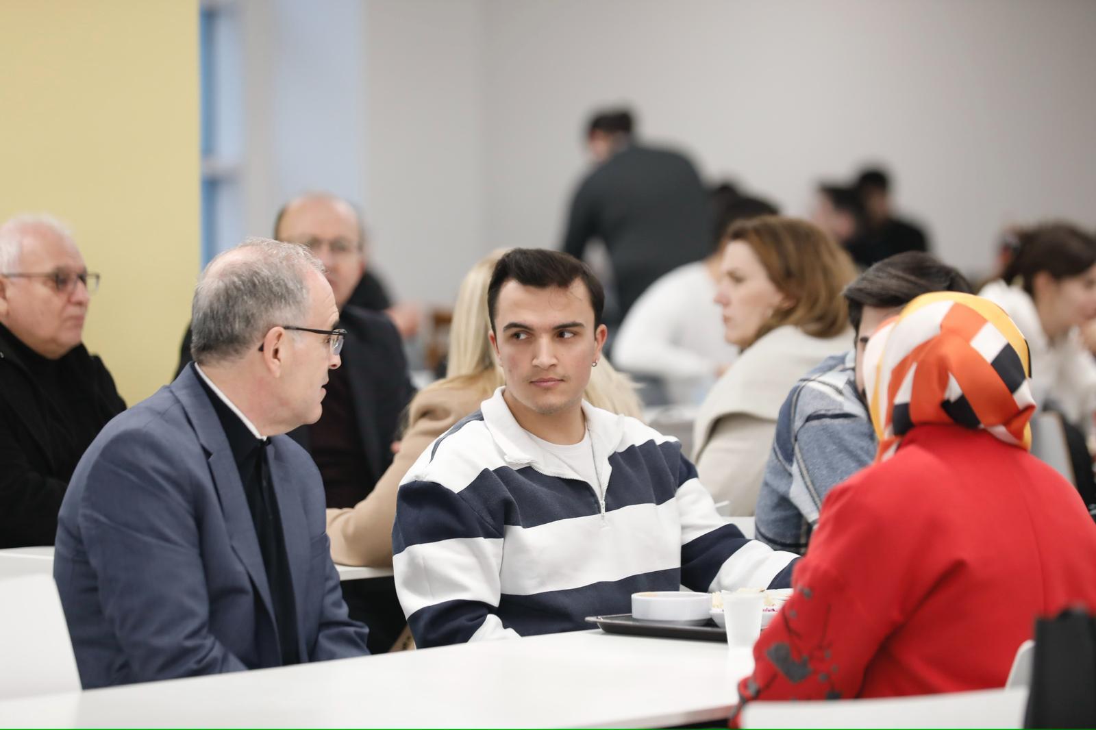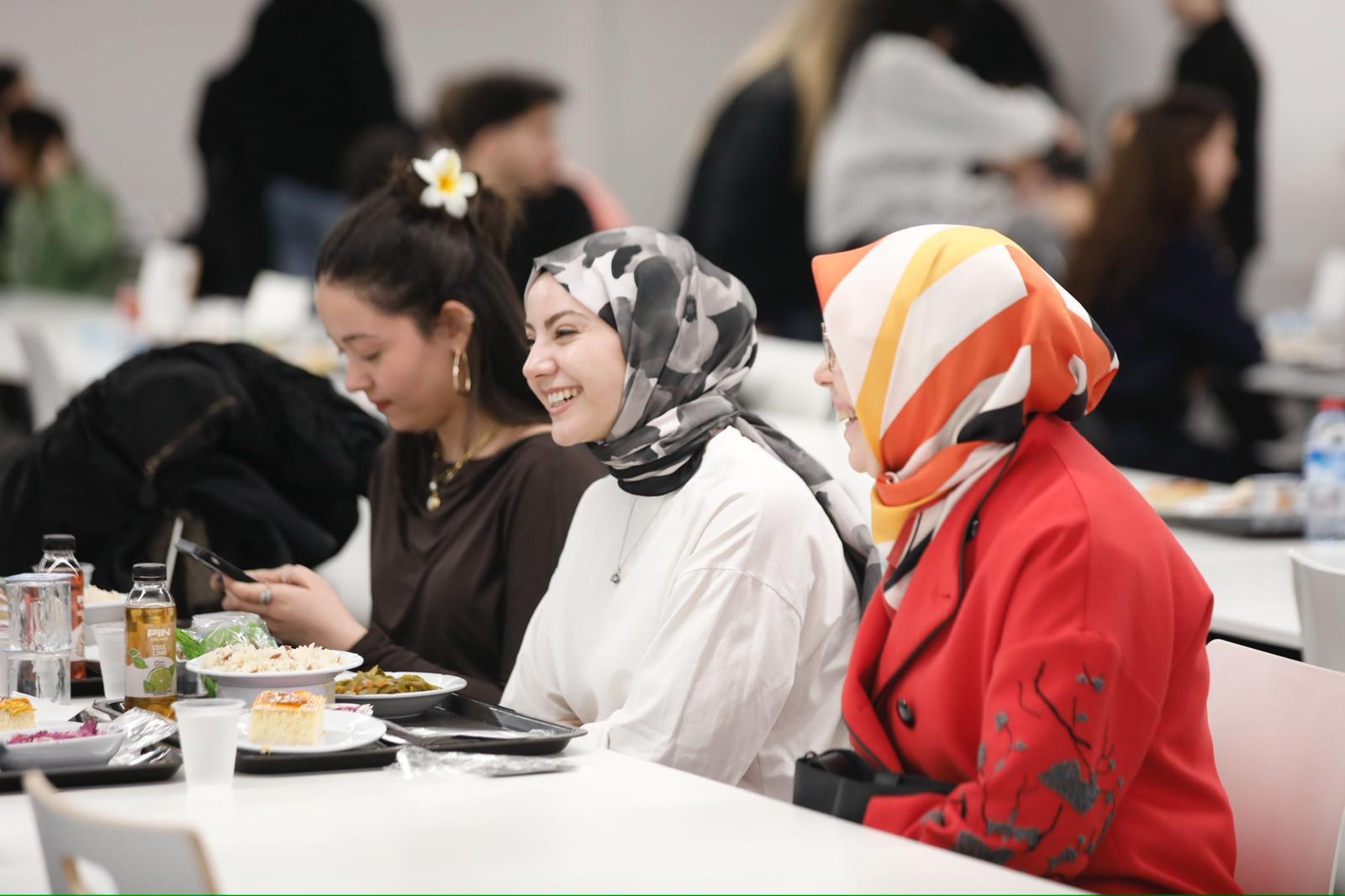 Samimi bir atmosferde gerçekleşen iftar programında Prof. Dr. İsmail Boz, öğrencilerimizle yakından ilgilenerek sohbet etti ve onların görüş ile taleplerini dinledi. Ramazan ayının birlik ve beraberlik duygularını pekiştirdiğini ifade eden Rektörümüz, öğrencilerimizle aynı sofrayı paylaşmaktan duyduğu memnuniyeti dile getirdi.