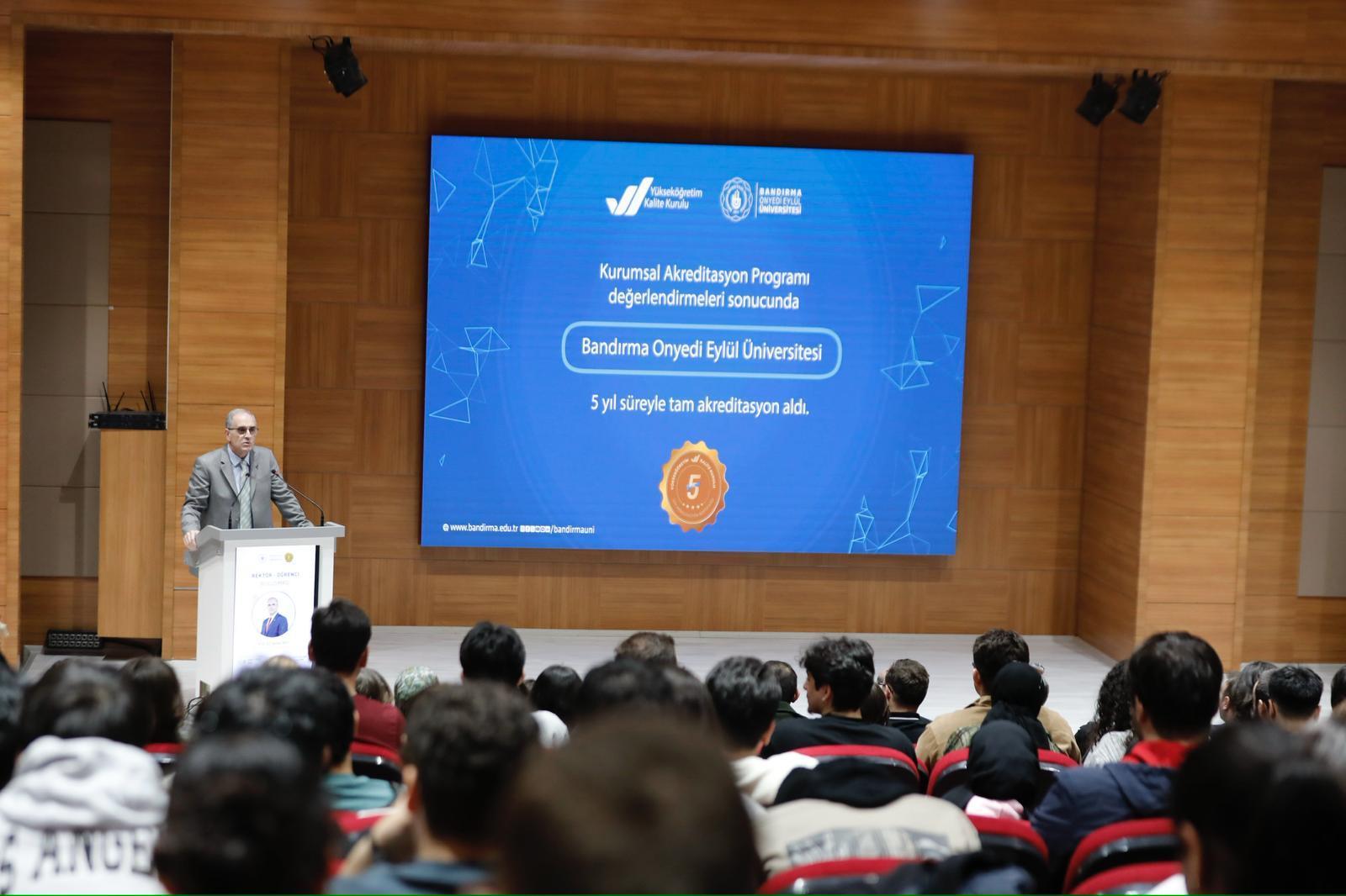 Üniversitemizde düzenli olarak gerçekleştirilen “Rektör-Öğrenci Buluşmaları” kapsamında Rektörümüz Prof. Dr. İsmail Boz, Mühendislik ve Doğa Bilimleri Fakültesi öğrencilerimizle bir araya geldi. Prof. Dr. Fuat Sezgin Konferans Salonu’nda gerçekleştirilen programa öğrencilerimiz yoğun ilgi gösterdi.