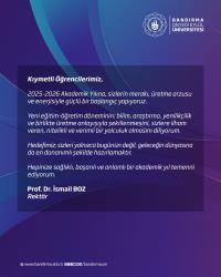 Yeni eğitim-öğretim döneminin; bilim, araştırma, yenilikçilik ve birlikte üretme anlayışıyla şekillenmesini, sizlere ilham veren, nitelikli ve verimli bir yolculuk olmasını diliyorum.