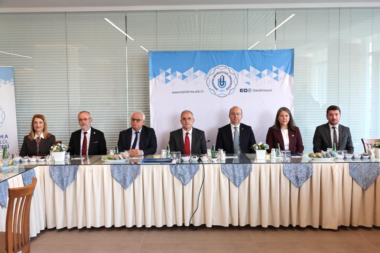 Türkiye Üniversite Memnuniyet Araştırması (TÜMA 2025) sonuçlarına da değinen Prof. Dr. Boz, Üniversitemizin yönetim ve işleyiş memnuniyetinde 13’üncü, öğrenim deneyiminde 18’inci, akademik destek ve ilgi alanında 21’inci, genel memnuniyet sıralamasında ise 29’uncu sırada yer aldığını aktardı. Toplantıda sağlık alanındaki gelişmelere de yer veren Rektörümüz, Bandırma Onyedi Eylül Üniversitesi Tıp Fakültesinin beş yıl gibi kısa bir sürede önemli bir gelişim gösterdiğini; öğretim üyesi başına yayın performansında Türkiye genelinde üst sıralara yükseldiğini ifade etti. Bandırma Eğitim ve Araştırma Hastanesi’nin organ naklinde Türkiye birincisi olduğunu ve “Anne Dostu Hastane” unvanı almaya hak kazandığını da sözlerine ekledi.