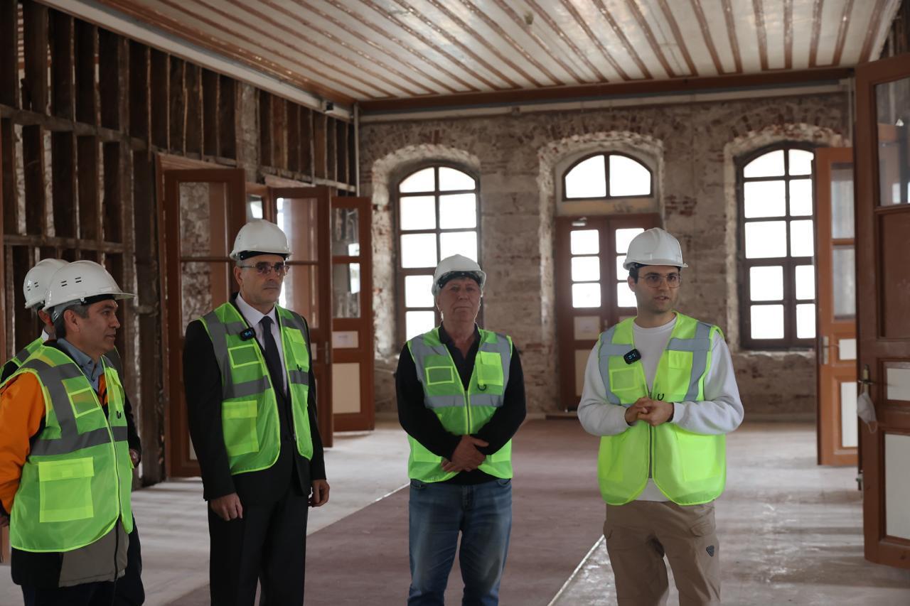 Rektörümüz Prof. Dr. İsmail Boz, Balıkesir Kültür Varlıklarını Koruma Bölge Kurulu tarafından onaylanan proje ve uygulama esasları doğrultusunda restorasyon çalışmalarına başlanan Yerleşke’de incelemelerde bulundu. Restorasyon çalışmalarına ilişkin açıklamalarda bulunan Rektörümüz Prof. Dr. İsmail Boz, söz konusu yapının Bandırma’nın ve bölgemizin önemli kültürel miraslarından biri olduğunu belirterek, restorasyon çalışmalarının Bakanlığımızın bütçesi ve desteğiyle yürütüldüğünü ifade etti. Yerleşke’nin tarihte hangi amaçla ve nasıl kullanıldığına dair detaylı bilgiler veren Rektörümüz Prof. Dr. İsmail Boz, başlatılan restorasyon çalışmalarının, geçmiş dönemlerde yapılan sınırlı müdahalelere kıyasla çok daha kapsamlı olduğunu belirterek restorasyon sürecinin tarihi ve mimari dokuyu koruyacak şekilde titizlikle yürütüldüğünün altını çizdi. Çalışmaların yaklaşık iki ila üç yıl içerisinde tamamlanmasının planlandığını belirten Rektörümüz Prof. Dr. İsmail Boz, restorasyonun ardından yapının yeniden yükseköğretim kurumu olarak hizmet vermeye devam edeceğini kaydetti.
