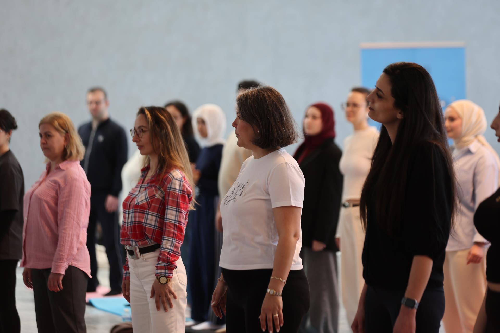 Etkinlik kapsamında, Fizik Tedavi ve Rehabilitasyon Uygulama ve Araştırma Merkez Müdürümüz Dr. Öğr. Üyesi Şule Keçelioğlu tarafından "İsveç Temelli Beden Farkındalık Terapisi" egzersizleri yaptırıldı. Katılımcıların bizzat dahil olduğu programda, çeşitli beden farkındalığı teknikleri pratik edildi. Etkinlik boyunca katılımcılar; uzman eşliğinde gerçekleştirilen egzersizleri yerinde deneyimleme ve uygulama şansı buldular.
